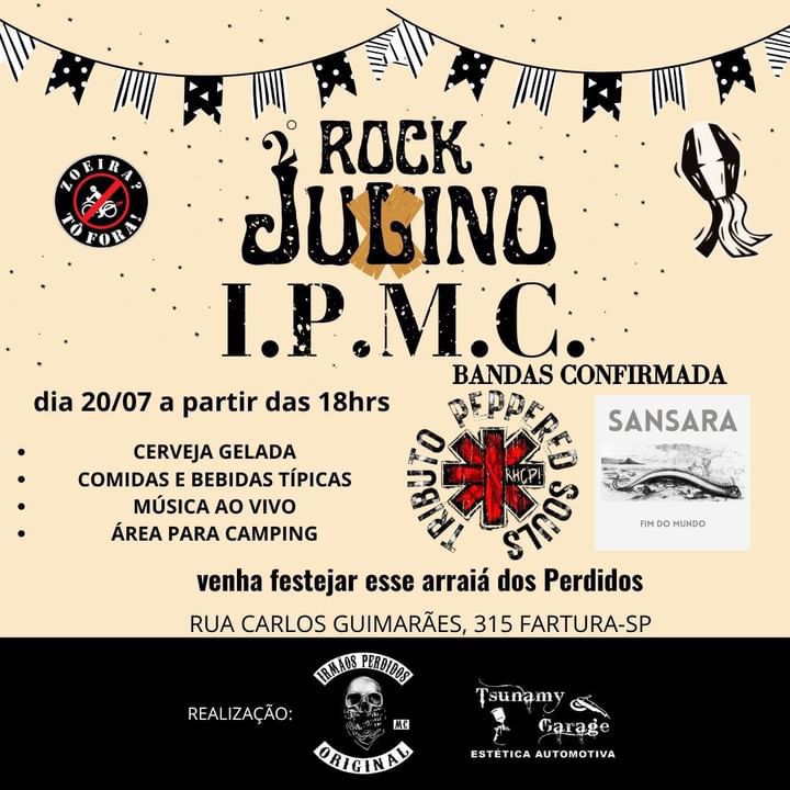 Em parceria com o motoclube Irmão Perdidos Original e Tsunamy Garage, neste 20 de julho, acontece o Rock Julino na cidade de Fartura