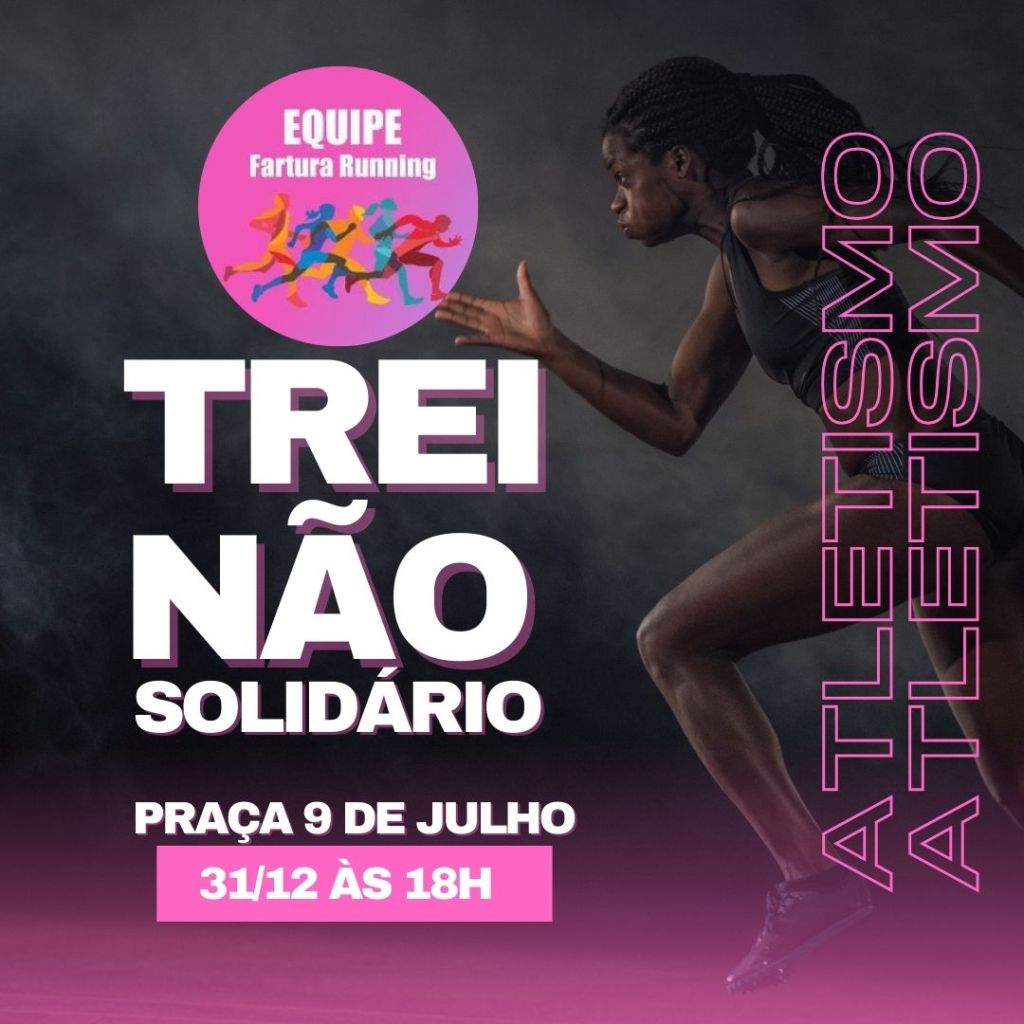 A Equipe Fartura Running realizará no dia 31 de dezembro deste ano, na praça 9 de Julho um “Treinão Solidário”, o evento acontecerá as 18 horas e para participar é só doar um quilo de alimento não perecível.